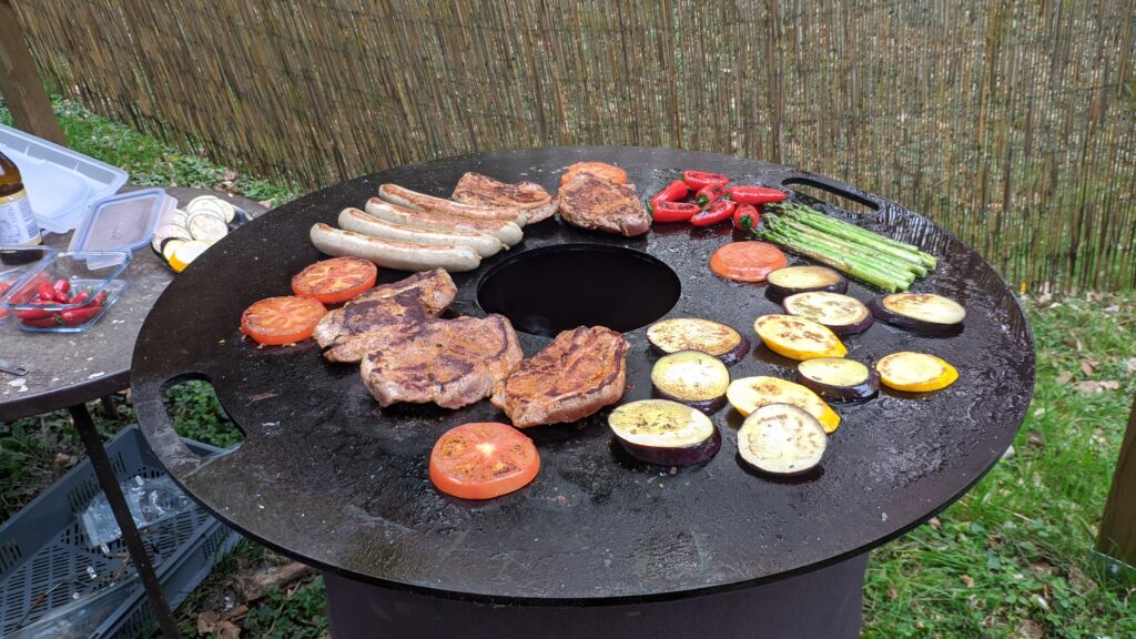 - Eine Feuerschale zur Zubereitung von Stockbrot und Steckerlfisch